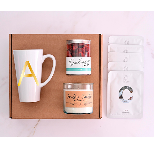 Este kit premium presenta una cuidada selección de productos para el deleite y el autocuidado, Incluye una elegante taza con detalles dorados, cinco mascarillas faciales de alta calidad para un momento de relajación; una vela perfumada «Milky Candle» para crear un ambiente acogedor; y un frasco de botana artesanal de tamarindo enchilado para un toque de sabor único. Todo empacado en una fina caja de cartón corrugado a la medida ideal para este kit, la cual tiene insertos internos para acomodar y fijar los productos.